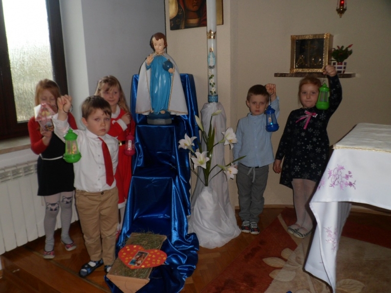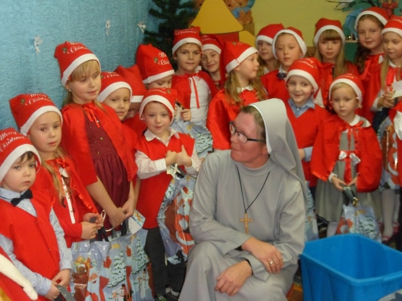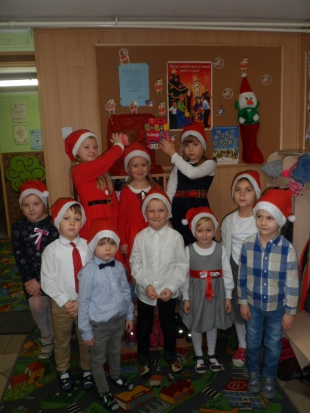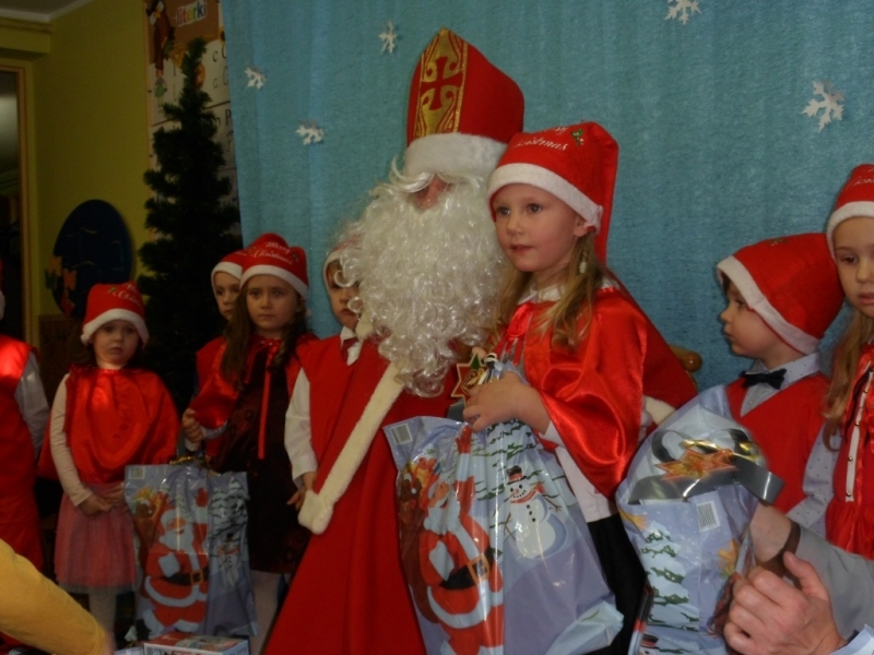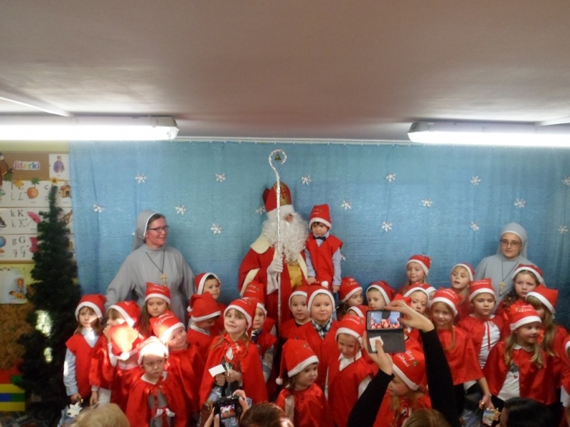 że niebawem przybędzie do przedszkola święty Biskup. Zanim to nastąpi dzieci wrzucają do worka swoje zabawki i słodycze, by podzielić się nimi z dziećmi z ubogich rodzin. Sam dzień 6 grudnia przebiega pod znakiem oczekiwania na upragnionego Gościa z Nieba. A gdy już przybędzie to dzieci jak tylko najbardziej potrafią: cierpliwie, z radością, zadziwieniem i czasami niepokojem czekają na prezenty mając nadzieję, że nikt rózgi nie dostanie, bo przecież każde z nich było grzeczne.