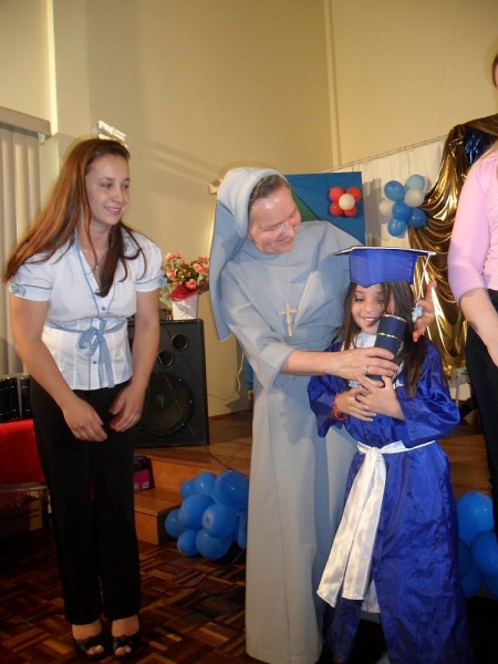 W następnym dniu, pragnąc przybliżyć rodzicom przedszkolaków owoce pracy personelu zatrudnionego w tej oświatowej instytucji, zaprezentowane zostały przygotowane z dziećmi występy. Dzieci przedstawiły m. in. „Jasełeka” opracowane przez Siostrę Zytę Golonka, CSSJ wraz z Wychowawczyniami grup. Oczywiście, w ramach świętowania nie mogło zabraknąć św. Mikołaja i radości z otrzymanych prezentów. Była też tzw. „Formatura” dwóch grup dzieci (pięciolatki) kończących formację przedszkolną, co po trosze obrazują poniżej zamieszczone fotografie.