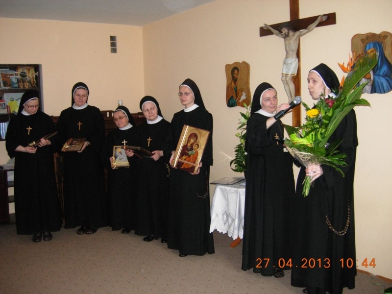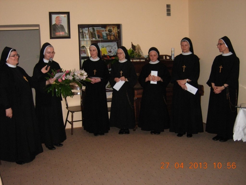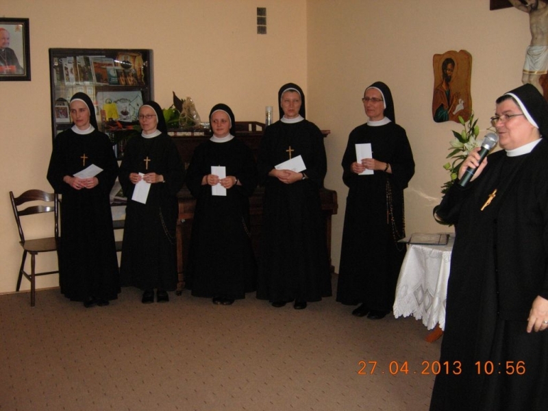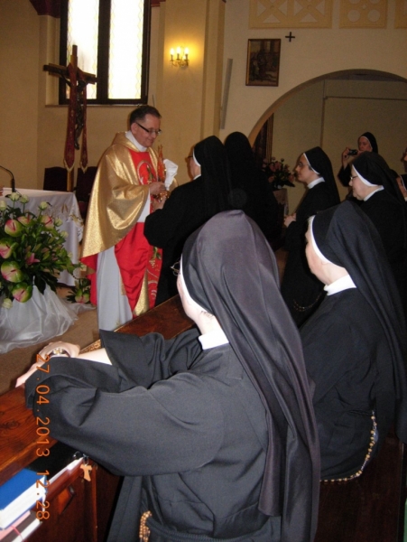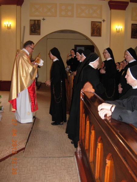 Po życzeniach i gratulacjach miała miejsce druga część uroczystości – Eucharystia celebrowana przez Ks. Aleksandra Radeckiego, pełniącego posługę Ojca Duchownego w Metropolitalnym Wyższym Seminarium Duchownym we Wrocławiu. Podczas Eucharystii Siostry przez wstawiennictwo Maryi Matki Kościoła zawierzały posługę nowo mianowanych Sióstr upraszając dla nich dary Ducha św. i wszystkie łaski potrzebne do jak najlepszego wypełnienia zleconej misji. Siostry Prowincji w darze od Matki Generalnej otrzymały relikwie bł. Jana Pawła II.