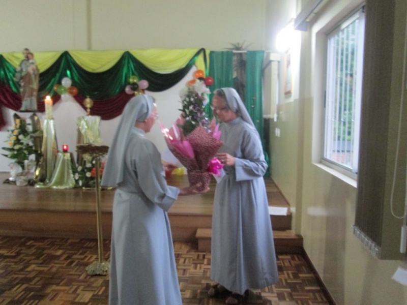 Na te uroczystość przyjechała także z Rio de Janeiro S. Arcadia. Siostra Salvatoris najpierw podziękowała Siostrom Radnym ustępującego Zarządu: S. Doris Kulik i S. Zycie Golonka oraz S. Sewerynie Wiejaczka - Ekonomce Delegatury za współprace w minionym 3.leciu. Następnie po odczytaniu nominacji, w imieniu Matki Generalnej udzieliła błogosławieństwa nowo mianowanej Przełożonej Delegatury S. Doris Kulik i Siostrom Radnym: S. Salvatoris Smaluch i S. Agnieszce Maniak, oraz S. Sewerynie zamianowanej na kolejne 3.lecie Ekonomce Delegatury. Zachęciła również Siostry do wierności, wzajemnej miłości, współpracy i autentycznego świadectwa przynależności do Chrystusa. S. Faustyna w imieniu wszystkich Sióstr skierowała słowa wdzięczności za posługę ustępującemu zarządowi Delegatury, szczególnie dla S. Salvatoris Smaluch za wieloletnią posługę jako Przełożonej Delegatury i serdeczne życzenia dla nowego Zarządu Delegatury. Uwieńczeniem przeżyć i radości była Eucharystia celebrowana przez Prowincjała Księży Marianów - Ks. Leandro Aparecido da Silva. Nasza radość przedłużyła się podczas wspólnej kolacji. Na koniec Siostry Nowicjuszki przedstawiły krótką prezentację „Ballady o św. Józefie” życząc nowej Siostrze Delegatce i Zarządowi, przemożnego wstawiennictwa naszego Wielkiego Patrona - św. Józefa i w imieniu Sióstr całej Delegatury zapewniły o modlitewnym wsparciu.