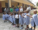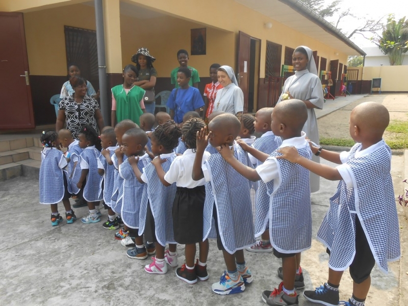 Nasze przedszkole było chyba jedynym, które w tym dniu rozpoczęło działalność, ale na 90 zapisanych dzieci przyszło tylko 21 - mieszkających najbliżej. Dziś już było lepiej i prawie wszyscy byli obecni. Oczywiście nie obyło się bez płaczu tych, którzy po raz pierwszy przeżyli rozłąkę z rodzicami. Łatwiej było z tymi, którzy mają już za sobą roczny staż. Ci z radością powitali przedszkole i swoje nowe klasy i wychowawczynie. Ważnym wydarzeniem dla wszystkich było pożegnanie S. Roberty CSSJ i powitanie S.Cecile CSSJ, która objęła funkcję dyrektorki. Dobremu Bogu zawierzamy w rozpoczynającym się roku przedszkolnym wszystkie dzieci, rodziców i wychowawców.”