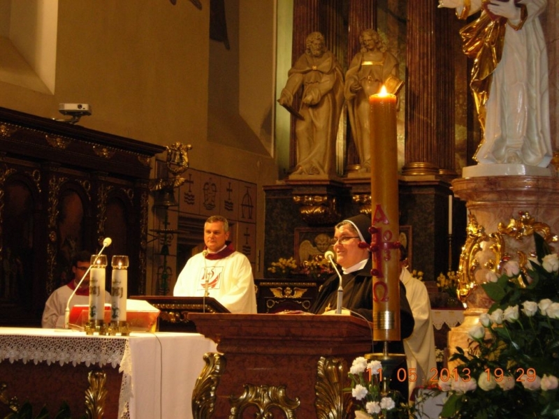 Józefickiej Rodziny zakonnej, dołączając wiele innych podziękowań i próśb, o czym przypomniała Matka Leticja Niemczura, Przełożona Generalna Zgromadzenia Sióstr Świętego Józefa, witając wszystkich uczestników czuwania. Modlitewne trwanie rozpoczęła Msza Święta o godzinie 19.00, której przewodniczył - w zastępstwie J.E.. Bpa Ordynariusza kaliskiego Ks. Edwarda Janiaka - Wikariusz Generalny w Diecezji Kaliskiej Ks. Prałat Andrzej Latoń, Prezes Polskiego Studium Józefologicznego. On też wygłosił stosowną, niezwykle bogatą w Józefowe treści homilię. Mszę Świętą koncelebrował Ks. Grzegorz Lechowicz, Diecezjalny Ojciec Duchowny Diecezji Tarnowskiej. Ks. G. Lechowicz towarzyszył również Siostrom przez cały czas modlitewnego czuwania, oraz celebrował Eucharystię o północy. W czasie nocnego czuwania obok dwóch Eucharystii, modlono się „Wezwaniami do św. Józefa”, przygotowaną przez Siostry Nowicjuszki Adoracją o św. Józefie, Koronką do św. Józefa prowadzoną przez Siostry Postulantki. Odprawione zostało także nabożeństwo różańcowe przygotowane przez Siostry z Prowincji Tarnowskiej. Nie zabrakło też modlitwy brewiarzowej, gdyż Siostry wspólnie celebrowały Jutrznię i „Modlitwę czytań”. Na zakończenie odśpiewane zostały „Godzinki do św. Józefa” oraz ponowiono „Akt oddania się św. Józefowi”. Trudno nie wspomnieć o pięknie przygotowanej oprawie liturgicznej obydwu Mszy św., o modlitewnym śpiewie chóru józefickiego pod dyrekcją S. M. Efraimy Szymanych CSSJ, oraz chóru przybyłego z parafii św. Józefa z Torunia prowadzonego przez S.M. Nikodemę Sieczkoś CSSJ. Długo zapewne będą brzmiały w sercach uczestników modlitewnego czuwania wołania „Józefie, Świety Patronie, bądź wodzem naszych dusz…” i wiele innych