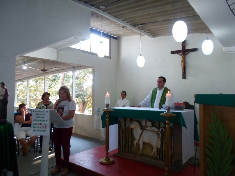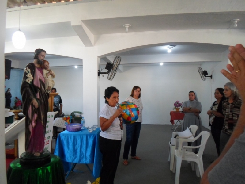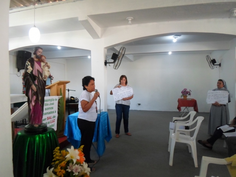 przykład św. Józefa, uświadamialiśmy sobie na nowo, iż tak jak On, my wszyscy jestesmy powołani, aby być solą i światłem we wszystkim, co Bóg powierza każdemu i każdej z nas. Zaczęliśmy dzień od dynamiki na powitanie i animacji, kierowanych przez S.Rosenilda CSSJ i Cristine CSSJ, które towarzyszyły rekolektantom śpiewem i muzyką przez cały dzień. Modlitwę wprowadzajacą poprowadzila Sheila – nasza parafianka i członkini MGSJ, W czasie modlitwy pochyliliśmy się nad tekstem Mt 5,13-14. Następnie Telma poprowadził dynamikę w czasie ktorej releksja dotyczyła znaczenia soli i światła w życiu każdego z nas. Do południa Uczestnicy mieli jeszcze godzinną Adorację Najświętszego Sakramentu, animowaną przez S. Rosenilda i kilku członkow MGSJ. W czasie Adoracji modlono się również o nowe powołania. Po południu przybył do nas Ks. Walmir da Silva, kapelan Marynarki Wojennej, który wygłosił konferencję opartą na Ewangelii wg Mt 5,13-14. W swoim wystąpieniu Kaznodzieja odwołując się do życia św. Józefa, podkreślił znaczenie świeckich chrześcijan w misji Kościoła i społeczeństwa. Ks. Walmir da Silva przewodniczył także Mszy św., po której mieliśmy chwilę dzielenia się świadectwem kilku osób. S.Dobrosława CSSJ zaprezentowała z kolei slajdy ze zdjęciami z poprzednich rekolekcji. Z wypowiedzi i świadectw Uczestników „Dnia skupienia” wynikało, że spotkanie to odnowiło ich nadzieję i wiarę. Mówili, że wrócą do domów bardziej oddani Bogu poprzez wstawiennictwo i przykład św. Józefa i odważniejsi, aby kontynuować swoje misje. W Skupieniu wzięło udział 26 osób, a także S. Arkadia CSSJ i postulantka Gabriela, które pomagały w jego przygotowaniu i organizacji . Dziękujemy i chwalimy Boga za łaski, które otrzymaliśmy!