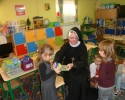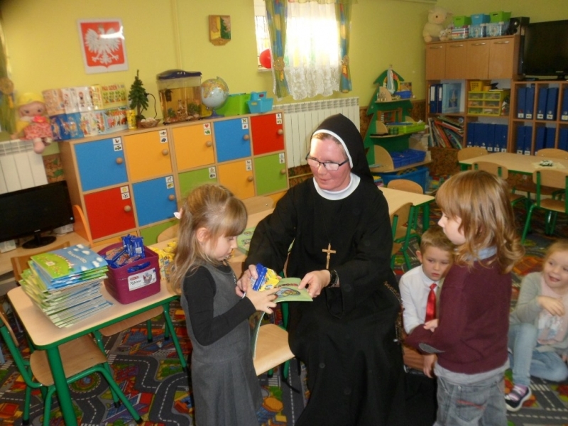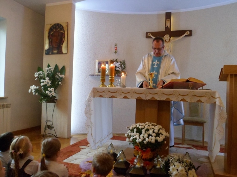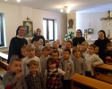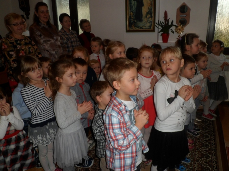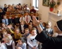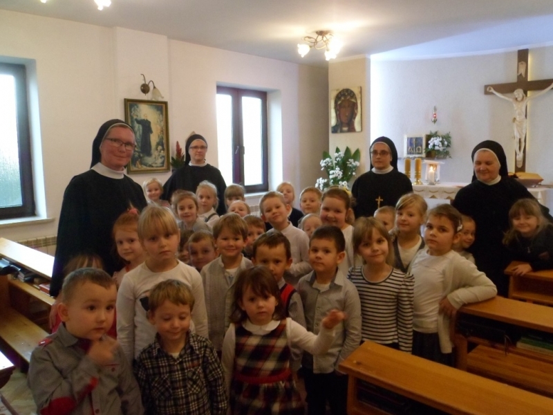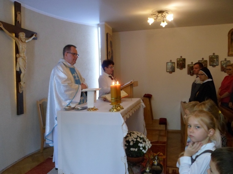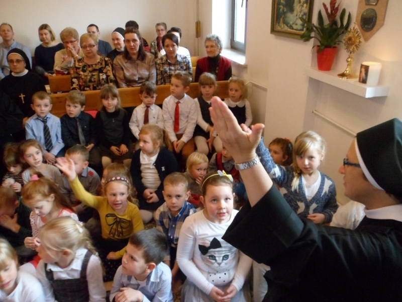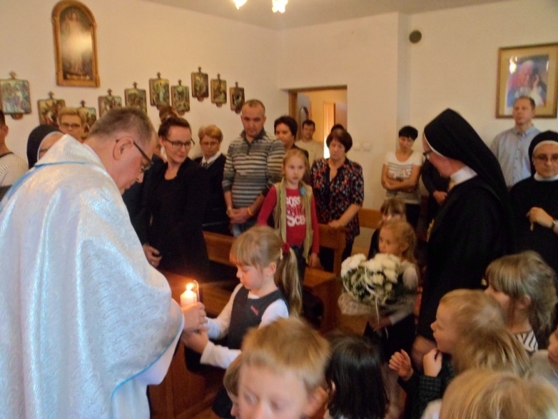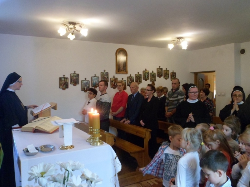 Wraz z Siostrami tutejszej Wspólnoty we Mszy świętej wzięły udział dzieci – nasze przedszkolaki i członkowie ich Rodzin. Dzieci włączyły się w oprawę liturgiczną Mszy św. swoim śpiewem oraz procesją z darami, a dorośli uczynili to poprzez czytania i modlitwę powszechną. W homilii Ks. Proboszcz podziękował za posługę Sióstr, zachęcił do modlitwy o nowe powołania, a poprzez dialog z dziećmi wezwał Patronów naszego Zgromadzenia, by swoim wstawiennictwem wypraszali potrzebne nam łaski. Na koniec była niespodzianka – każdy z obecnych otrzymał książkę o św. Ks. Zygmuncie Gorazdowskim – Założycielu Zgromadzenia, wielkim Apostole Bożego Miłosierdzia.