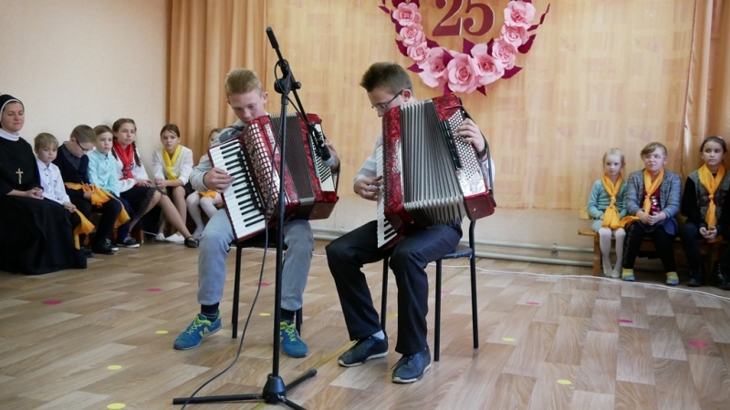 Ks. Bp Stanisłav w wygłoszonej homilii zaakcentował sprawę otwartości na odkrywnie woli Boga. Wspominając początki pracy Sióstr Józefitek, Ks. Biskup wyraził wdzięczność Zgromadzeniu za to, że Siostry podjęły pracę w trudnych warunkach, gdzie był zrujnowany kościół, w małej parafii, w której nie było nawet na stałe kapłana. Po Mszy św. parafianie wyrazili słowa wdzięczności za posługę Sióstr w Lubarze i wszystkie licznie zgromadzone Siostry oraz zaproszonych gości obdarowali drobnymi upominkami. Na ręce S. Tobiaszy Siemek- Przełożonej Delegatury Ukraińskiej przekazali „korowaj” – ozdobny chleb. Po Mszy św. wszyscy zostali zaproszeni na drugą część świętowania w budynku „Caritas”. Tam po posiłku przygotowanym przez parafian odbyła sie część artystyczna przeplatana wspomnieniami. Młodzi artyści czyli dzieci z przedszkola prowadzonego w Lubarze przez Siostry Józefitki oraz dzieci i młodzież z parafii śpiewali, tańczyli i grali na różnych instrumentach. W świętowaniu uczestniczyła również S. Joannes Mazurkiewicz – Radna Generalna, która przyjechała z Krakowa.