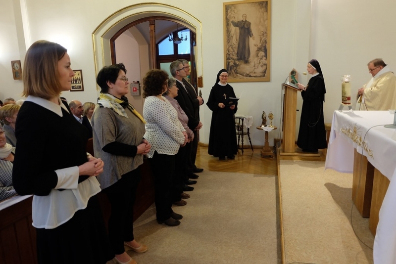 Jubileuszowe świętowanie rozpoczęło się koronką do Miłosierdzia Bożego odmawianą przed wystawionym Najświętszym Sakramentem, którą poprowadził O. Justyn – franciszkanin z Borek. Dziękując za 20 lat opieki, S. Franciszka-Animatorka Grupy odmówiła modlitwę do św. Józefa, powierzając wstawiennictwu Wielkiego Patrona kolejne lata istnienia Grupy i ich rodzin. W cichej Adoracji Najświętszego Sakramentu każdy trwał w dziękczynieniu. Podczas modlitwy była możliwość skorzystania z Sakramentu Pokuty i Pojednania. Adoracja została zakończona modlitwami Nowenny przed Uroczystością Świętego Józefa, które poprowadziła S. Mistrzyni Julita wraz z Siostrą Nowicjuszką Zygmuntą. Śpiewem pieśni i litanii towarzyszyła Grupie S. Przełożona Zuzanna. Następnie rozpoczęła się Msza św., podczas której zostało przyjętych sześciu nowych Członków. Po Uroczystej Eucharystii licznie zebrani uczestniczy zostali zaproszeni do sali Ojca Założyciela na prezentację, która przedstawiała początki istnienia Grupy, przypominała o jej charakterze, ukazywała świadectwa Sióstr i Członków Grupy – zostały w niej ukazane cnoty i piękno osoby św. Józefa. Po zakończonej prezentacji, S. Teresilla złożyła serdeczne życzenia dla całej Grupy. Swoją wdzięczność przybyłym Siostrom przekazali również Członkowie Grupy, dziękując za towarzyszenie im w poszczególnych latach. Podziękowania skierowane zostały do S. Przełożonej Zuzanny wraz z całą wspólnotą za otwarte drzwi domu i serca Sióstr. Świętowanie zakończyło się wspólną agapą w refektarzu.