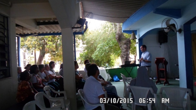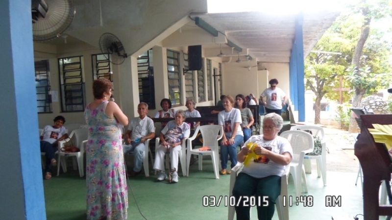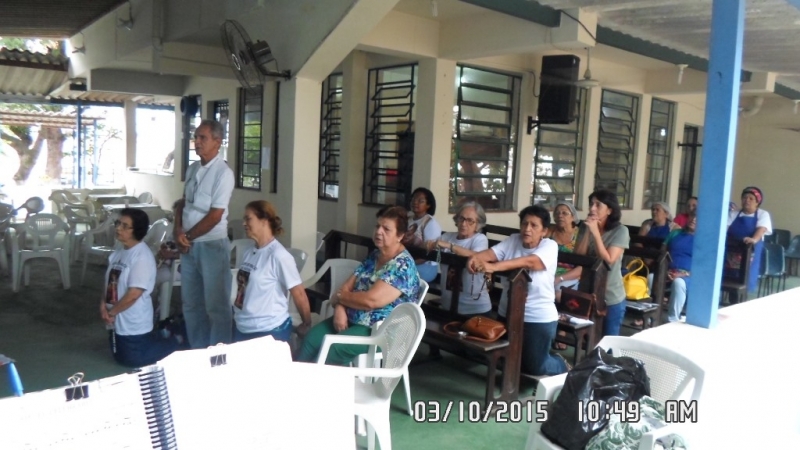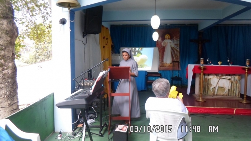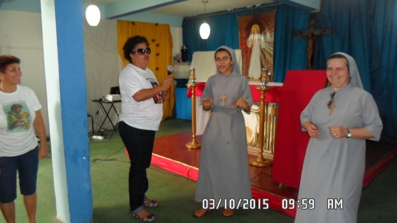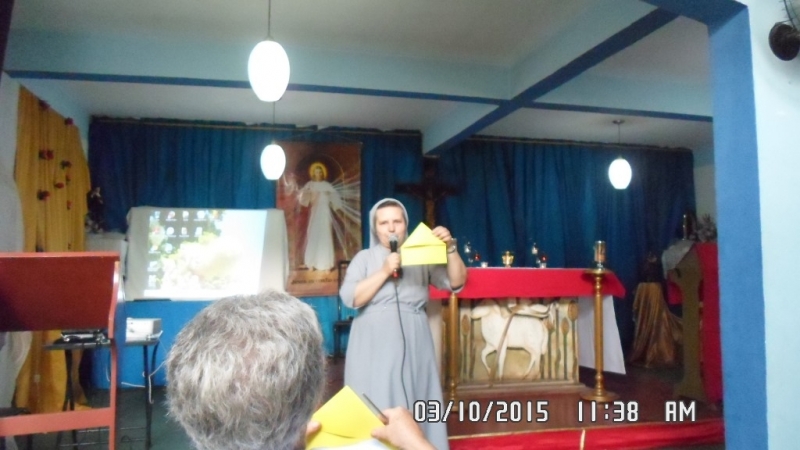 Część popołudniową rozpoczęliśmy dynamikami przygotowanymi przez S. M. Anitę CSSJ i jedną z członkiń Grupy – P. Telmę. Godzinę Miłosierdzia spędziliśmy na Adoracji Najświętszego Sakramentu i odmawiając Koronkę do Miłosierdzia Bożego. W kolejnym punkcie rekolekcji miała miejsce dynamika "Krzyż" przygotowana przez S.M. Dobrosławę CSSJ. Spotkanie zakończyliśmy podwieczorkiem i świadectwami uczestników. W tym roku spotkanie odbyło się w formującej się Kaplicy św. Ryty na terenie naszej parafi. W rekolekcjach uczestniczyło 17 osób, w Adoracji wzięły dział również Panie Wolontariuszki, które pracowały w kuchni. Z gałęzi pobliskich drzew towarzyszyły nam ptaki i ... małpki.