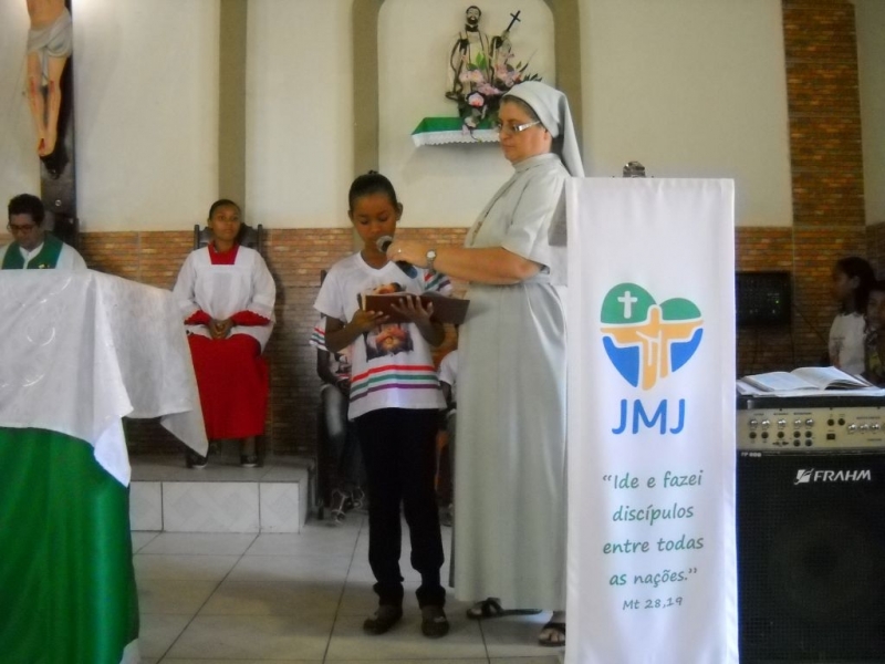 Cały Kościół brazylijski łączy się w tych intencjach i wyprasza robotników na żniwo Pana. Dzisiaj też na Mszy z udziałem dzieci została zaprezentowana grupka ministrantów, która od początku roku przygotowuje się do liturgicznej służby ołtarza. A dzieci w wieku przedszkolnym po życzeniach dla ks. Proboszcza zaprezentowały choreografię piosenki o powołaniu. Pozdrawiamy i łączymy się w modlitwach.”