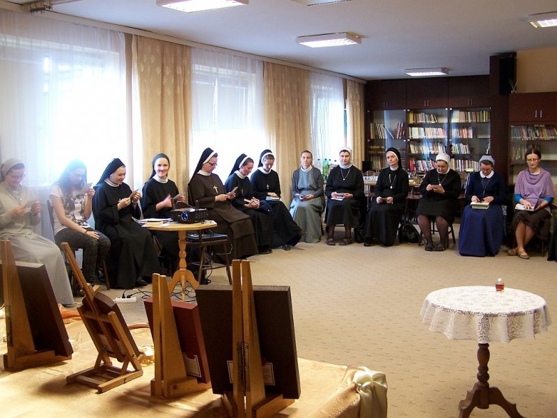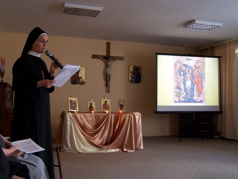 Także osoby świeckie wzięły udział w spotkaniu. Sesję prowadziła siostra M. Wirginea Pasternak CSSJ we współpracy z siostrą M. Ewą Mazurek CSSJ i siostrą M. Władysławą Krasiczyńską CSSJ oraz siostrą M. Mateuszą Ciszewską CSSJ. Spotkanie rozpoczęło się w piątkowe popołudnie wprowadzeniem w tematykę sesji. Siostra Wirginea Pasternak zapoznała uczestniczki z tematem „Ikona – namalowane Słowo Boże”. Następnie wysłuchaliśmy świadectwa oraz kontemplacji ikony „Chrzest Chrystusa w Jordanie”, przygotowanej w formie prezentacji multimedialnej. Po przerwie zabrała głos Siostra Ewa Mazurek z konferencją: „Życie konsekrowane – wprowadzenie w tajemnicę”. Tę część zakończyły wspólne Nieszpory w kaplicy. Po kolacji była wieczorna, godzinna adoracja w ciszy Najświętszego Sakramentu. Sobotę rozpoczęła poranna Eucharystia. Ten drugi dzień sesji upłynął nam na zgłębianiu tematyki rad ewangelicznych. Odbywało się to poprzez konferencje s. Ewy Mazurek, rozważanie fragmentów Słowa Bożego, w które wprowadzała nas s. Władysława Krasiczyńska oraz prezentacje multimedialne z kontemplacją ikon i świadectwami. Refleksjom na temat rady ubóstwa towarzyszyła ikona św. Franciszka z Asyżu, posłuszeństwa - ikona św. Józefa, a czystości - ikona Maryi rozradowanej w Duchu Świętym. Po wprowadzeniu w tematykę każdej kolejnej rady był zawsze czas na modlitwę osobistą w kaplicy przed ustawioną na ołtarzu ikoną, towarzyszącą omówionej radzie. Była też wspólna modlitwa Nieszporami w kaplicy. W sobotni wieczór, podczas adoracji Najświętszego Sakramentu, miała miejsce modlitwa uwielbienia oraz odnowienie ślubów zakonnych przez Siostry uczestniczące w sesji. Ostatni dzień był czasem dzielenia się świadectwami i refleksjami oraz czasem na niedzielną Eucharystię, przeżytą przez uczestniczki spotkania we wspólnocie wszystkich Sióstr Józefitek. Bardzo się cieszę, że miałam możliwość uczestniczenia w sesji. Ukazała ona, że rady ewangeliczne nie są przeznaczone tylko dla osób konsekrowanych, że każdy chrześcijanin może nimi na co dzień żyć. Jestem wdzięczna Siostrom Św. Józefa za podzielenie się z nami ich charyzmatem i duchowym bogactwem oraz za to, że w spotkaniu mogły wziąć udział także osoby świeckie. Dzięki temu w Roku Życia Konsekrowanego doświadczyłam, jaką ma ono wartość i jak wiele może wnosić także w moje życie. Aneta Słowik z Kluczborka