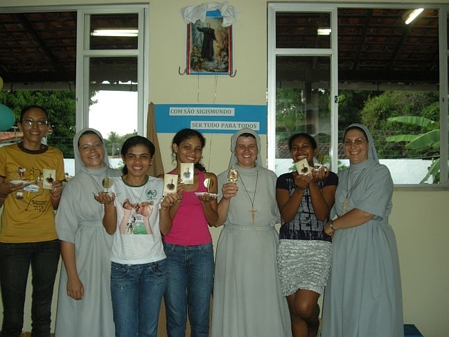 Następnie w małych grupkach uczestniczki spotkania rozważały w jaki sposób mogą naśladując św. Zygmunta, zdobyć te same trzy medale. Na zakończenie każda z uczestniczek otrzymała medal z zachętą, czyli dołączoną myśl św. Zygmunta Gorazdowskiego oraz bułeczkę – symbol tego, by dzielić się tym, czego doświadczyły i co odkryły podczas tego spotkania. Po ucałowaniu relikwii św. Zygmunta nastąpiło wręczenie medali i zamknięcie „Pan-Santidade” odśpiewaniem pieśni ku czci św. Zygmunta pt. „Być wszystkim dla wszystkich…”.