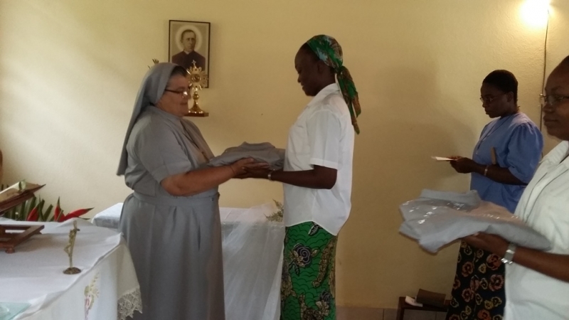 Dzień z ceremonią tzw. obłóczyn rozpoczął się modlitwą, uroczystym śpiewem porannego brewiarza, a także wysłuchaniem konferencji duchowej mówiącej o powołaniu . W tym czasie Ojciec Jose-Maria, salezjanin służył Siostrom Sakramentem Spowiedzi. Prawdziwa uroczystość rozpoczęła się w godzinach południowych uroczystą Mszą św. W pięknie ustrojonej kaplicy nowicjackiej na stole przykrytym białym obrusem złożone zostaly habity, które poświęcił O. Jose- Maria. Przy tej okazji podkreślił znaczenie habitu, jako znaku przynależności do Zgromadzenia i znaku zewnętrznego prostoty, ubóstwa i pokuty, które każda Siostra akceptuje z miłości do Jezusa. Po homilii, która nawiązywała do niedzielnej Ewangelii, w której Pan Jezus wysyłał po dwóch uczniów, by głosili Królestwo Boże, S. Letycja-Przełożona Delegatury Afrykańskiej Zgromadzenia Sióstr Świętego Józefa, a zarazem Mistrzyni Nowicjatu, wręczyła habity Siostrom Nowicjuszkom: Beacie i Merline, które z szacunkiem je ucałowały. Po chwili nieobecności wróciły ubrane w habity – zmienione, radosne i szczęśliwe.Wspólnota powitała je oklaskami i śpiewem. Po Mszy św. nastąpiło dalsze świętowanie, tym razem w refektarzu. Ogarnijmy modlitwą Siostrę Beatę i Siostrę Merline, które przyjęły habit, by wytrwały w powołaniu i znalazły radość i szczęście w służbie Bogu i ludziom.