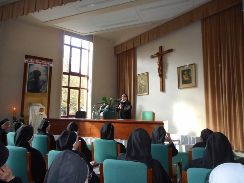 Zgromadzenia i wielkiego Apostoła Bożego Miłosierdzia,już w pierwszym dniu spotkania po modlitewnym wołaniu, Siostry wysłuchały wykładu nt.: „Zagadnienie pokoju w nauczaniu i życiu św. Zygmunta Gorazdowskiego odczytane przez pryzmat ostatniego ‘Orędzia’ Jana Pawła II na Światowy Dzień Pokoju”. Prelekcję tą wygłosiła S.M. Dolores Siuta CSSJ. W tym też dniu została odprawiona Eucharystia z wygłoszoną homilią przez Ojca Mariusza Uniżyckiego OFM – Ekonoma Prowincji Zakonu Braci Mniejszych.