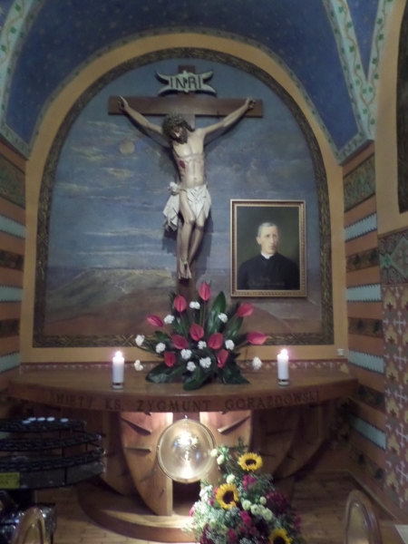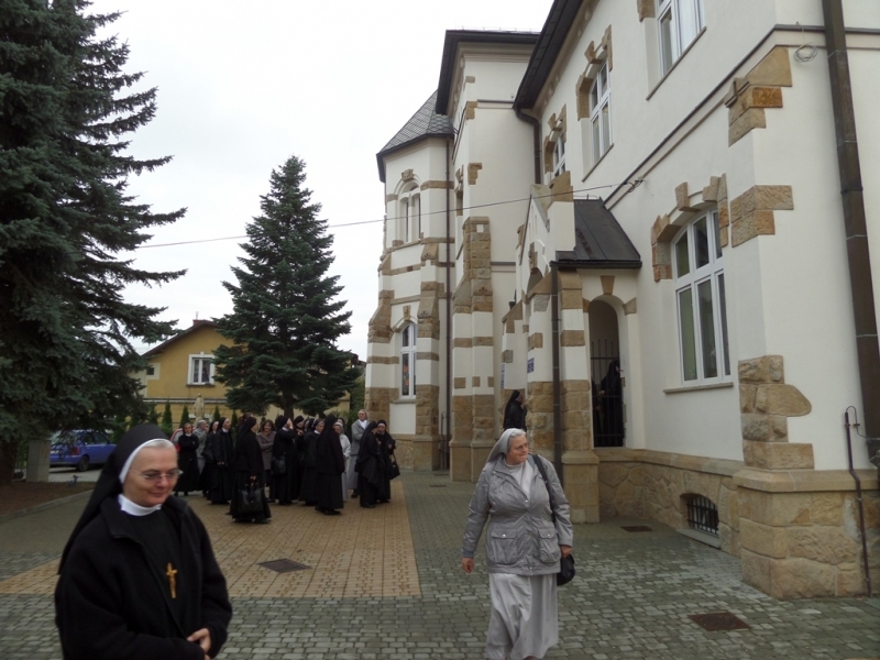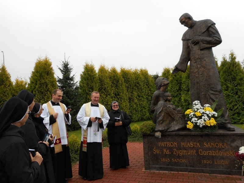 Kolejny dzień Sesji miał charakter pielgrzymkowy. Siostry na czele z Przełożoną Generalną M. Leticją Niemczura udały się dwoma autokarami najpierw do Sanoka – rodzinnej miejscowości św. Zygmunta Gorazdowskiego. Pierwsze kroki skierowały do kościoła pw. Chrystusa Króla, w pobliżu którego znajduje się wspaniały pomnik poświęcony św. Zygmuntowi, a sama świątynia wybudowana została (według przekonania wielu) w okolicach byłego rodzinnego domu Świętego. Tu zostały niezwykle gościnnie przyjęte przez tutejszego Proboszcza – Ks. Andrzeja Szkołę. Punktem kulminacyjnym pielgrzymki była Eucharystia, którą celebrował i homilię wygłosił Ksiądz Proboszcz. Mszę koncelebrował Ks. Prof. Bartosz Rakoczy – rodak sanocki pracujący w Radio „Fara” i przy parafii pw. Miłosierdzia Bożego w Krośnie. Po Mszy św. Pielgrzymi ucałowali relikwie św. Zygmunta i udali się pod jego pomnik, gdzie Kapłani, Siostry Św. Józefa i inni obecni wierni modlitewnym Aktem oddali się pod szczególną opiekę Świętego. Po przerwie Ks. Prof. Bartosz Rakoczy wygłosił prelekcję nt. sprawiedliwości ewangelicznej i przebaczenia, jako drogi do pokoju w życiowej wykładni św. Zygmunta Gorazdowskiego. Konferencja została wygłoszona w pięknej sali w dolnym kościele, gdzie również odbyła się projekcja filmu o Ks. Zygmuncie pt.”Gorazdowski” – filmu będącego pokłosiem rajdu studentów dziennikarstwa Uniwersytetu Jana Pawła II w Krakowie „Szlakiem św. Zygmunta Gorazdowskiego”.