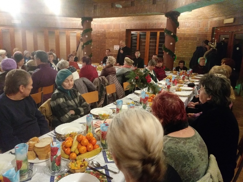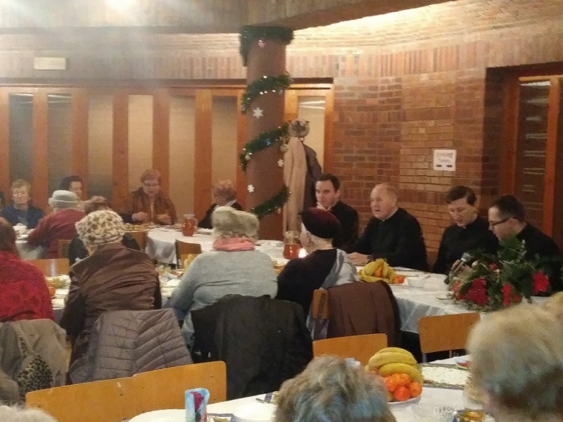 Natomiast 23 grudnia 2018 roku rokrocznym zwyczajem po Mszy św. o godz. 15.00 miała miejsce Wieczerza Wigilijna dla samotnych i chorych Parafian. Przy prawdziwie wigilijnym stole zastawionym sercem i stosownymi potrawami przez S. Alenę Zawada CSSJ wraz z Paniami z Parafialnej Kuchni zasiadło ponad sto osób. Jakież to więc było świętowanie przy kolędowych śpiewach z udziałem kapeli „Mogilianie”, kiedy Osoby samotne, chore mogły się połamać wigilijnym opłatkiem z Ks. Proboszczem Zygmuntem Koskiem, z Księżmi Wikarymi, z Siostrami Józefitkami i jakże liczną grupą świętujących Parafian. Kolejnym dniem bożonarodzeniowego świętowania był dzień 6 stycznia 2019 roku, kiedy to po Mszy św. o godz. 18.00 w sali przy parafialnej zgromadzili się na opłatkowym spotkaniu przedstawiciele Zespołu Caritas z S. Domityllą, Róży Różańcowej, Klubu Seniora animowanego przez S. Rachelę Rąpałę, Kuchni Parafialnej na czele z S. Aleną, Wolontariusze, Dobroczyńcy – w sumie ponad sto osób zasiadło przy wspólnym stole wraz z Ks. Proboszczem Zygmuntem Koskiem, Księżmi Wikarymi i Siostrami Józefitkami. Wszystkie te wydarzenia były prawdziwym darem Bożego Miłosierdzia i wielką radością Wspólnoty parafialnej.