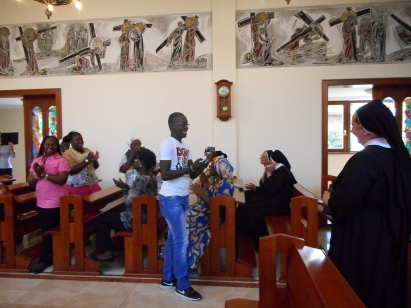 Warto wspomnieć, że w stolicy Gabonu w Libreville już od ośmiu lat pracują Siostry Józefitki prowadząc Centrum Świętego Józefa. Otwiera ono swoje drzwi dla dzieci, by mogły skorzystać z edukacji w przedszkolu i szkole podstawowej, dla młodzieży by mogła zdobyć zawód, dla chorych by mogli odzyskać zdrowie. W Centrum istnieje również kaplica dojazdowa parafii pw. św. Krzysztofa, której proboszczem jest wspomniany Ks. Patrick Nguema Edou. W dziele ewangelizacji Siostry Józefitki pracujące w Libreville korzystają z posługi kapłańskiej i wielorakiej pomocy kapłanów z tamtejszej parafii. Z radością więc Siostry tym razem otworzyły szeroko drzwi domu i swoich serc użyczając lokum w Domu generalnym Zgromadzenia, by Pielgrzymi mogli znaleźć stosowne schronienie i dodatkowo ubogacić się duchowo. We wspólnej modlitwie, w atmosferze radości przebiegło zatem spotkanie Pielgrzymów z Gabonu z Siostrami Świętego Józefa w ich Domu generalnym w Krakowie.