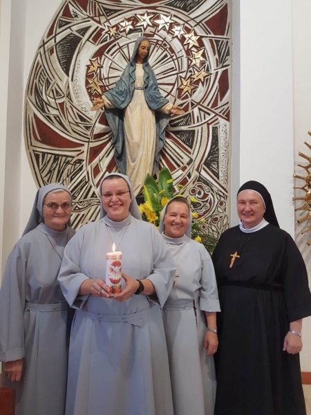 Tym razem żegnane były trzy Siostry: S. M. Rozariana Sitar CSSJ, która już od ponad 40 lat służy Bogu i ludziom na afrykańskiej ziemi, S. M. Agnieszka Maniak CSSJ, która ponad 30 lat działa w Brazylii, oraz S. M. Natana Świerad CSSJ, która rozpoczyna swoje ewangeliczne posłanie także w Brazylii. Idźcie więc, Kochane Siostry na cały świat…, bo przecież wciąż wiele jest serc, które czekają na Ewangelię…