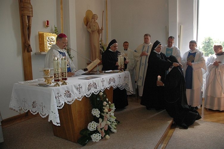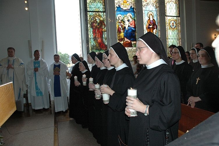 Natomiast dn. 15 sierpnia, w Uroczystość Wniebowzięcia Najświętszej Maryi Panny, siedem Sióstr Nowicjuszek oddało całkowicie swe życie Bogu składając śluby zakonne – czystości, ubóstwa i posłuszeństwa (I Profesja). Siostry: S. M. Judyta Czerwińska, S. M. Wira Żuk, S.M. Augustyna Fetuk, S.M. Maria Emiliana Romanowska, S. Maria Monika Petrykowska, S.M. Terezjusza Pawlaczek i S.M. Terezita Sowińska jako znak zewnętrzny dokonanej zakonnej konsekracji otrzymały z rąk Matki Leticji drewniany krzyżyk i egzemplarz zakonnego Ustawodawstwa. Uroczystej Mszy św. w trakcie której Siostry złożyły śluby zakonne przewodniczył Ordynariusz Opolski - Ks. bp Andrzej Czaja. Współcelebransami byli Kapłani-Goście, którzy przybyli także z Ukrainy. Również wśród uczestników Uroczystości znajdowali się Krewni i Przyjaciele Sióstr ślubujących z Polski i z Ukrainy.