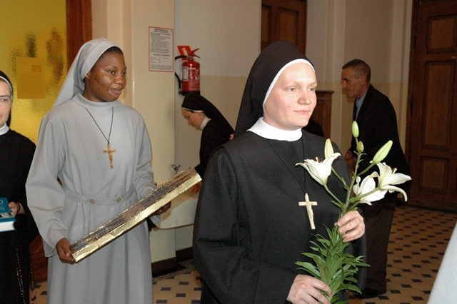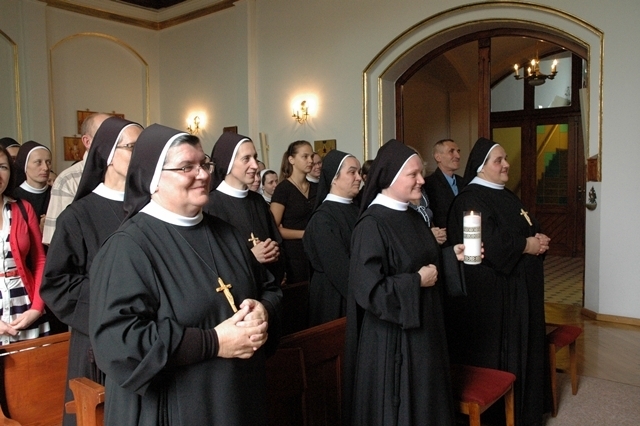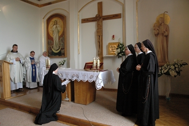 Bezpośrednio po rekolekcjach, w Uroczystość Wniebowzięcia Najświętszej Maryi Panny w kaplicy klasztornej odbyła się ceremonia pierwszych ślubów zakonnych S. Ozeaszy Jędrzejewskiej. Uroczystej Mszy św. w trakcie której S. Ozeasza złożyła Pierwszą Profesję zakonną przewodniczył Ojciec Rekolekcjonista W. Popielewski, a w koncelebrze wzięli udział: ks. Jan Sypko SCJ i o. Dominik Jakub Banaś OFM. W tej Uroczystości uczestniczyli krewni i bliscy Siostry Ozeaszy, oraz oczywiście Siostry Józefitki. Ojciec Popielewski we wprowadzeniu do Liturgii przypomniał o szczególnym znaczeniu ślubów zakonnych dla życia Kościoła, a także o jego bogactwie z racji panującej w nim „jedności w różnorodności". Natomiast w czasie homilii szczególnie zwrócił uwagę na rozwój Zgromadzenia Sióstr Świętego Józefa i realizowane przez niego dzieło ewangelizacji na całym świecie. (Ojciec głosił słowo w dwóch językach: po polsku i po francusku, ze względu na obecność Sióstr Afrykanek.) Podczas uroczystej Eucharystii miała miejsce procesja z darami, w której złożono na Ołtarzu m. in. świecę z przeznaczeniem do nowo powstałej wspólnoty w Niemczech, różańce na misje, oraz kosz żywności będący darem dla ubogiej rodziny złożony w duchu Założyciela Zgromadzenia - św. Zygmunta Gorazdowskiego. Ta jakże wymowna Uroczystość została ubogacona śpiewem józefickiego chóru, którym dyrygowała i całość liturgii od strony muzycznej przygotowała S. Efraima Symanych cssj. Wspólna agapa uwieńczyła ogrom radości wylanej tego dnia obficie z Bożej hojności na Uczestników Ceremonii w kluczborskim klasztorze .
