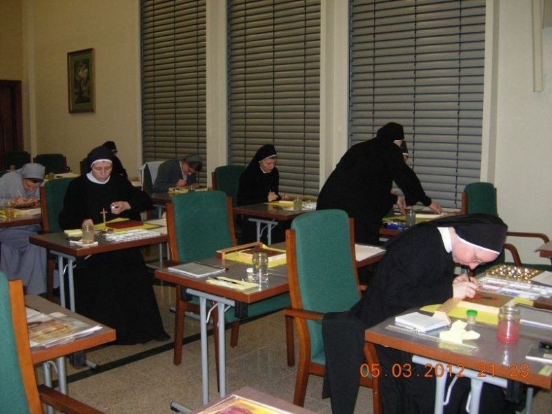homilią, Adoracja Najświętszego Sakramentu, konferencje, Sakrament Pojednania i Pokuty oraz prywatna modlitwa i rozmowy indywidualne z Ojcem, Przełożoną Generalną M. Leticją Niemczura i Siostrami Prowincjalnymi: S. Ewą Mazur i S. Marit Kot), wykorzystane zostały multimedialne kontemplacje wybranych ikon. Wśród nich szczególne miejsce miała ikona duchowości Zgromadzenia Sióstr Św. Józefa napisana przez S. Wirgineę. W ramach rekolekcji znakomita większość ich Uczestniczek podjęła się pisania ikony, by w ten sposób skorzystać z nietypowego a szczególnego zaproszenia do „spojrzenia na siebie od wewnątrz”. Do tego zadania Siostry przygotowały się poprzez trzydniową Sesję wprowadzającą w świat ikon, oraz podejmując w miesiącu poprzedzającym rekolekcje post, dodatkową modlitwę i jałmużnę. Siostry Rekolektantki niezaangażowane bezpośrednio w pisanie ikon stanowiły dla Sióstr je piszących żywe, modlitewne wsparcie. Na zakończenie rekolekcji Siostry odbywające swoją formację w tzw. „Ścisłym Junioracie” zaprezentowały niezwykłą w swojej wymowie inscenizację artystyczną ożywiając raz jeszcze postać św. Zygmunta Gorazdowskiego – Założyciela Zgromadzenia Sióstr Józefitek i ich Świętych Patronów.