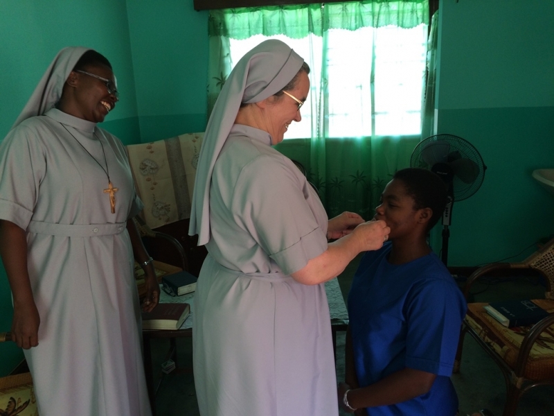 Przełożona Generalna Jana Przetak CSSJ przeprowadziła dla Sióstr spotkanie wokół Słowa Bożego i uradowała się z Siostrami darem powołania zakonnego złożonym w ich sercach. Na drogę duchowego wzrastania i oddania życia dla Jezusa, Matka Jana powierzyła Postulantki opiece Maryi. Siostry otrzymały z rąk Matki Jany medalik Matki Bożej Niepokalanej. Na tym etapie formacji Siostrom w Brazzaville towarzyszyć będzie S. M. Florianne Bounsitou Kembessa CSSJ.