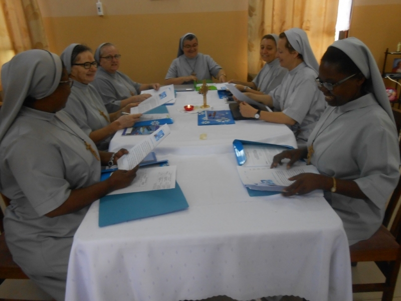 Spotkanie zorganizowane zostało przez Przełożoną Delegatury Afrykańskiej S. Leticję Niemczura CSSJ. Otóż, w dniach od 4 do 6 maja br. w Makabandilou (Kongo Brazzaville) odbyła się sesja formacyjna dla Przełożonych wspólnot z Konga Brazzaville, z Republiki Demokratycznej Konga, Gabonu i Kamerunu. W piątek odbyło się spotkanie na temat: Nowe życie w Duchu Świętym animowane przez S. Leticję Niemczura, która przybyła do nas z Kamerunu. Przy użyciu najnowszych metod pedagogicznych, przez refleksję i modlitwę, próbowałyśmy wejść w misterium Ducha Świętego w naszym józefickim, misyjnym życiu. Uświadomiłyśmy sobie, że żyć w Duchu Świętym tzn. żyć w MIŁOŚCI. Następnie w sobotę poprzez konferencje i warsztaty na temat: Dialog w życiu wspólnotowym przeprowadzone przez s. Rolande Milandou FMM, psycholog, skoncentrowałyśmy się na tym, co we wspólnotach wypływa z dobrze lub też źle prowadzonego przez nas dialogu. A niedzielę rozpoczęłyśmy w naszej przepięknej kaplicy uroczystą Mszą św. celebrowaną przez Proboszcza tutejszej parafii Ks. Benito Makaya – modliliśmy się w intencjach Zgromadzenia, o świętość i wierność w życiu konsekrowanym, o powołania i polecaliśmy wszystkie intencje Delegatury, oraz błagaliśmy o pokój na świecie a szczególnie o pokój w Republice Środkowej Afryki. Jeszcze przed południem przypomniany nam został m.in. temat: Rola Przełożonej we wspólnocie i omówiłyśmy aktualne potrzeby Delegatury. W tym krótkim czasie w serdecznej, rodzinnej atmosferze zostałyśmy ubogacone duchowo, aby owocniej służyć Panu i Zgromadzeniu. Za wszystko Bogu niech będą dzięki! Dobro rośnie, bo rośnie Boża MIŁOŚĆ na naszej afrykańskiej ziemi.