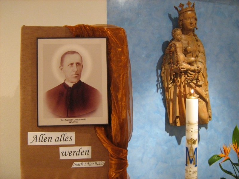 w którym pracują Siostry Józefitki. Postać Ojca Założyciela została przedstawiona przybyłym na Eucharystię mieszkańcom. Po Mszy św. mogli oni uczcić relikwie św. Zygmunta. Zabrzmiał także hymn dziękczynienia, który Siostry zaśpiewały w języku niemieckim. Aby pokazać dzieło i charyzmat Świętego, Siostry przetłumaczyły też na ten język film prezentujący Zgromadzenie: „Nasze wczoraj i dziś – 125 lat posługi Ubogim Chrystusowym”. W czasie uroczystości dało sie wyczuć obecność Ojca Założyciela, któremu Siostry nieustannie powierzają swą posługę.