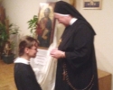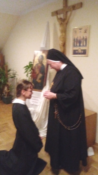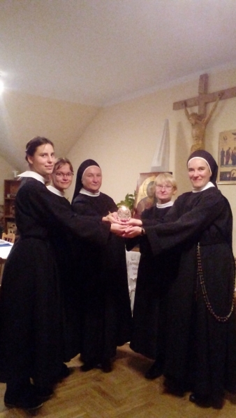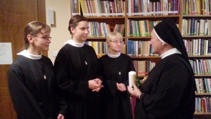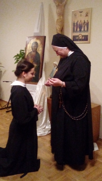 Siostra przy tej okazji przypomniała nowo przyjętym Kandydatkom, że nosząc medalik i sukienkę Postulantki są dla wszystkim widocznym znakiem obecności Chrystusa, znakiem innego świata. „Odtąd jesteś Siostrą Ludzi” – powiedziała S. Wikaria Wanda zwracając się do każdej z Sióstr Postulantek.Podczas tego spotkania Siostry pochyliły się nad Słowem Bożym, dzieląc się owocami modlitwy w oparciu ewangeliczny tekst o powołaniu pierwszych uczniów (Mt 4, 18-22). W czasie ceremonii nie zabrakło aktu ucałwania Relikwii Założyciela Zgromadzenia- św. ks. Zygmunta Gorazdowskiego. Całość upłynęła w atmosferze modlitwy, dzielenia się wiarą oraz radosnych śpiewów. Niech słowa: Ukochałem Cię odwieczną miłością zapadną głęboko w serca nowych Sióstr Postulantek tak, by dla wszystkich których będą spotykały, były prawdziwie Siostrami Ludzi..