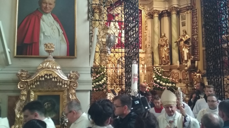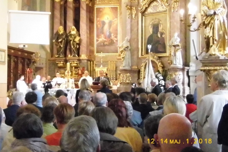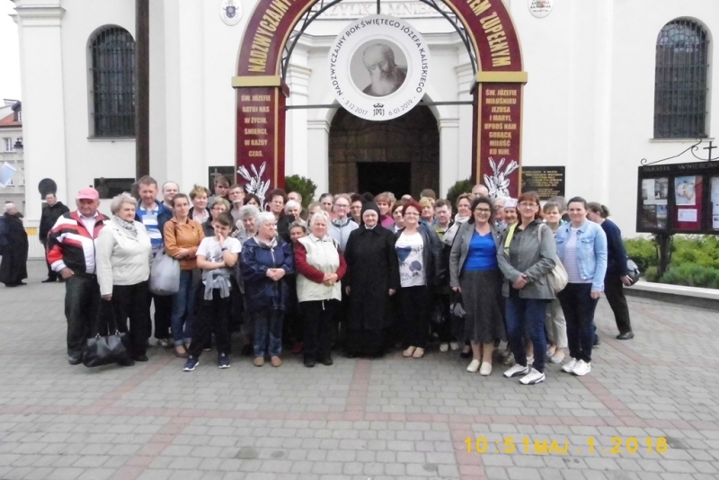 Tego dnia w ramach 26 ogólnopolskiej pielgrzymki przybyli do Kalisza do św. Józefa robotnicy i pracodawcy. O godz. 12:00 rozpoczęła się uroczysta Msza św., pod przewodnictwem Ordynariusza Diecezji kaliskiej, ks. bpa Edwarda Janiaka, który kolejny raz zawierzył św. Józefowi wszystkich robotników i pracodawców. Po Mszy św. pielgrzymi podzielili się chlebem i złożyli kwiaty pod pomnikiem św. Jana Pawła II. Uczestniczyliśmy w tej Mszy św. wraz z innymi pielgrzymkami z kilku parafii w Polsce.