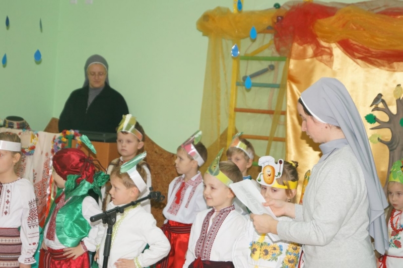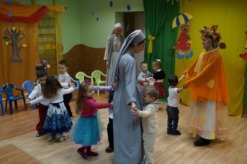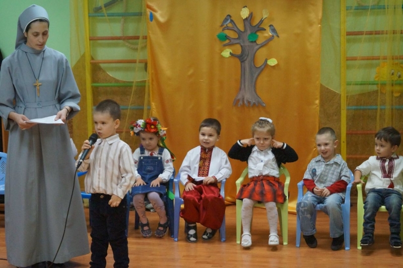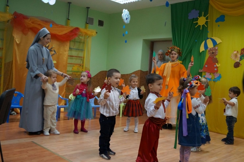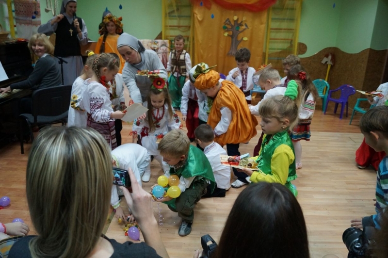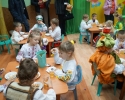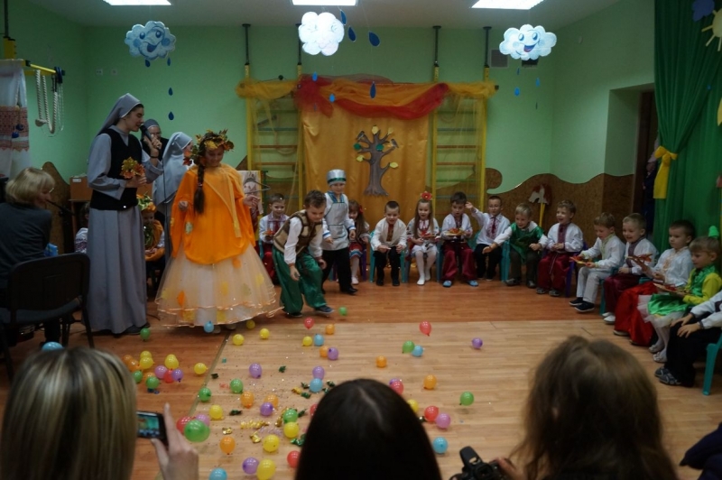 które przejawia się na zewnątrz poprzez twórczość naszych dzieci. Pomódlmy się więc wspólnie do Ojca Niebieskiego za nasze dzieci, aby wzrastały w łasce i mądrości, za wasze rodziny tak, jak nas nauczył Pan Jezus.” Po wspólnym odmówieniu modlitwy Ojcze nasz…. dzieci zaprezentowały piękne śpiewy i wiersze dla swoich rodziców. Nie zabrakło również gier i zabaw, w których aktywny udział wzięli też rodzice. Dzieci własnoręcznie przygotowały dla rodziców jesienne prezenty, które zostały wręczone pod koniec świętowania. Rodzice w zamian dla swoich małych pociech urządzili słodki poczęstunek. Całe święto było przeżywane w radosnym, miłym duchu prawdziwie ewangelicznej rodzinności.
