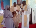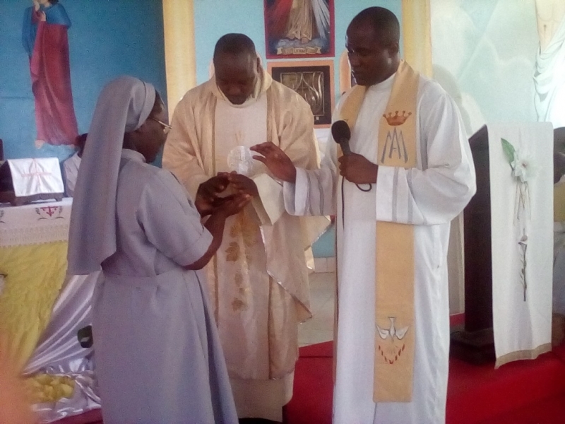 Siostrze Nicole towarzyszyły w tym dniu Siostry Józefitki ze wspólnoty z miejscowości Gamboma i oczywiście z Oyo. Podczas Mszy św. Ksiądz Proboszcz wręczył Siostrze Nicole różaniec błogosławiąc, by był on Światłem, które ją zawsze oświetli gdziekolwiek będzie.
