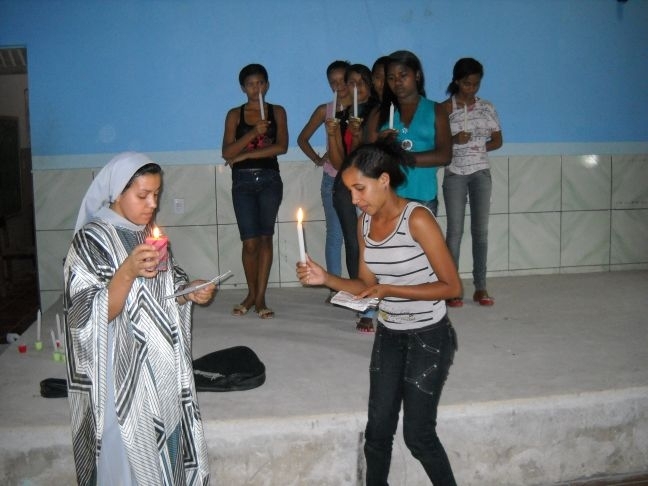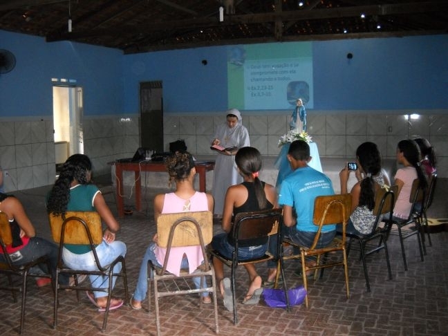W trzecią niedzielę miesiąca rozpoczęliśmy tydzień modlitw za powołanych do życia konsekrowanego i dzisiaj za laikat - modląc się w sposób szczególny za katechetów w ‘ich dniu’. Z tej okazji dzisiaj po południu odbyło się spotkanie powołaniowe przy parafii, zorganizowane przez Siostry Świętego Józefa - S. Rosenilde de Fátima Santos i S. Doris Kulik. Wzięła w nim udział grupa młodzieży, która próbowała odkryć ‘korzenie powołania’ i znaczenie tego odkrycia w życiu każdego z nas. Po krótkiej refleksji, medytacji nad tekstem Słowa Bożego i pracy w grupach, młodzież przedstawiła krótką scenkę o powołaniu. Polecamy więc w sposób szczególny intencje powołań dla Kościoła.”