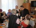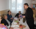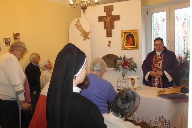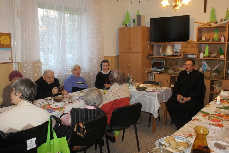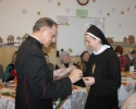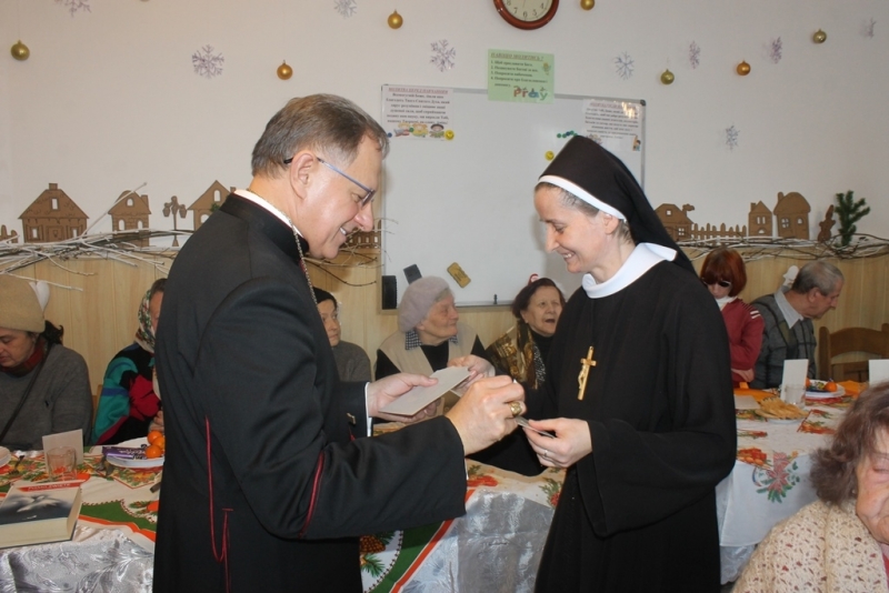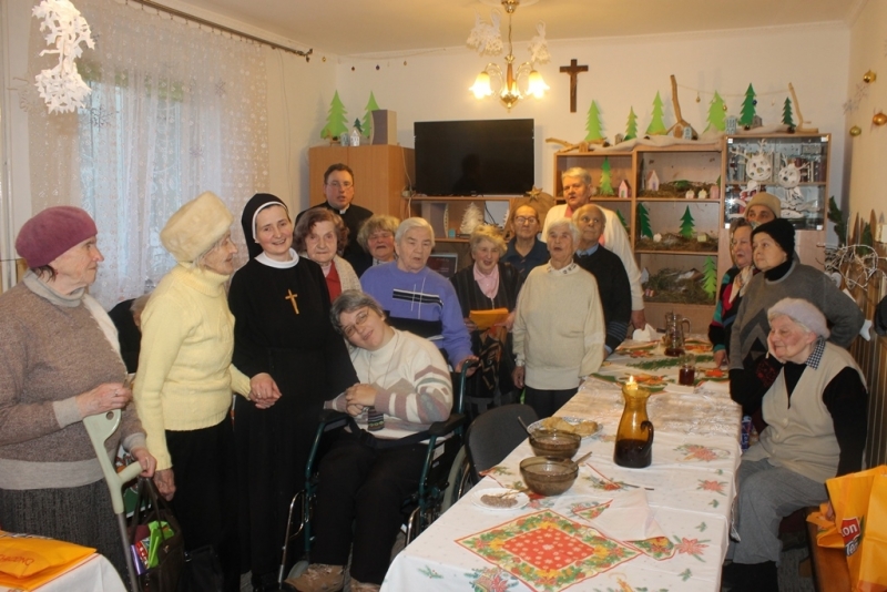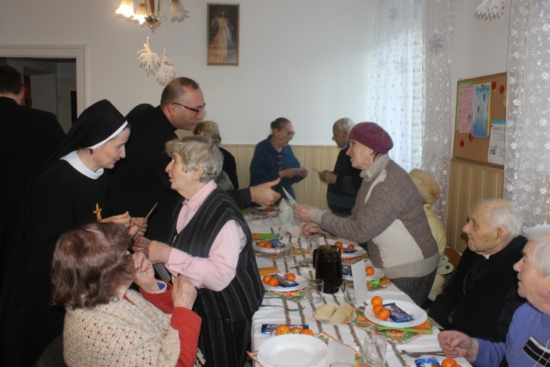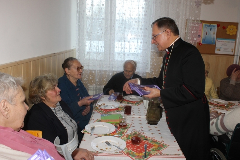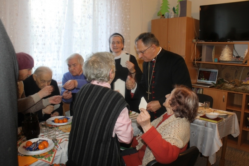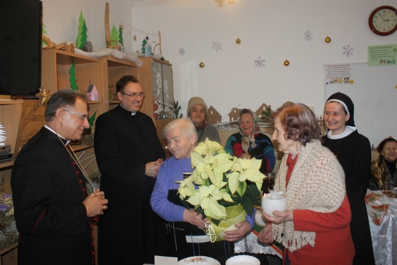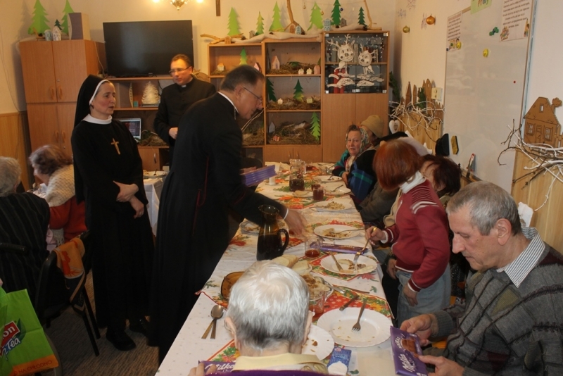 Na początku była Msza Św., którą odprawił ks. Andrzej Niedzielski. Podopieczni wspólnie się pomodlili i zgromadzili się przy stole wigilijnym śpiewając kolędy. W tym czasie przybył Ks. Arcybiskup Mieczysław Mokrzycki wraz ze swoim sekretarzem Ks. Andrzejem Legowiczem. Ksiądz Arcybiskup pobłogosławił uczestników i podzielił się opłatkiem, składając życzenia świąteczne. Podopieczni również złożyli życzenia swemu Pasterzowi dziękując za to, że zawsze ma czas na wspólne spotkanie. Razem wszyscy spożywali Wieczerzę, kolędowali i dzielili się radością. Na koniec Ksiądz Arcybiskup rozdał wszystkim uczestnikom słodkości i pobłogosławił. Wszyscy jeszcze przez chwilę kolędowali, a później zostali rozwiezieni do swoich domów. W poniedziałek 24 grudnia br. Siostra Grażyna Bocheńska CSSJ rozwiezie “Wigilię” 25 osobom, które z powodu choroby nie mogły wziąć udziału we wspólnym spotkaniu.