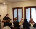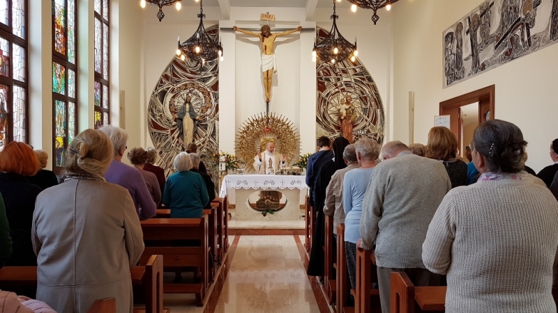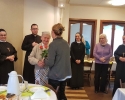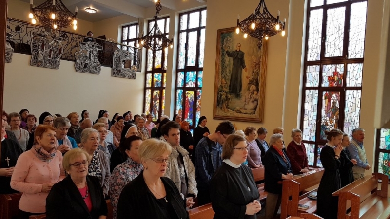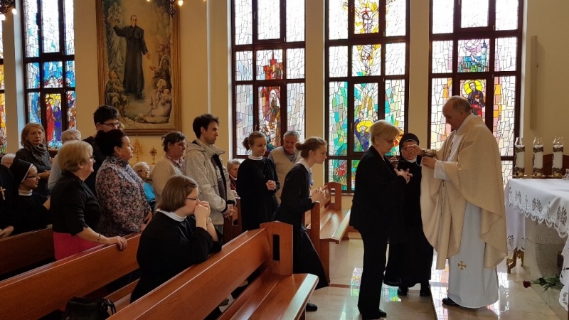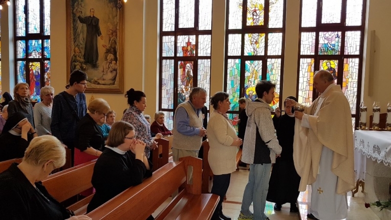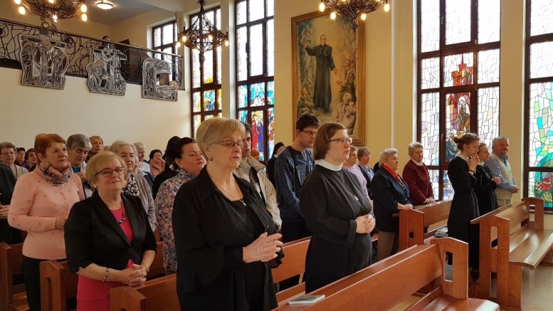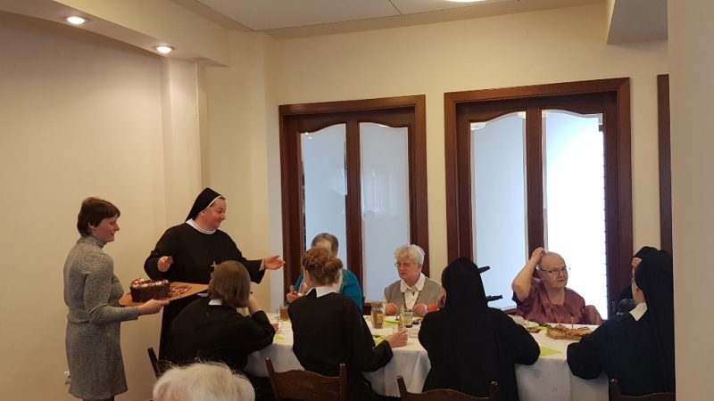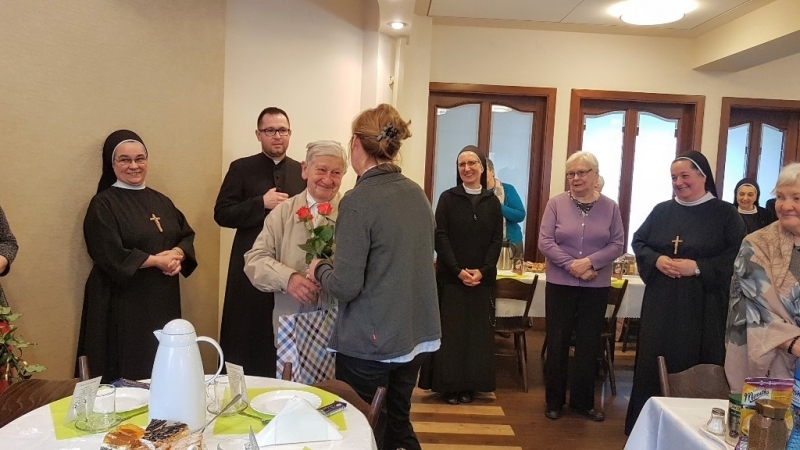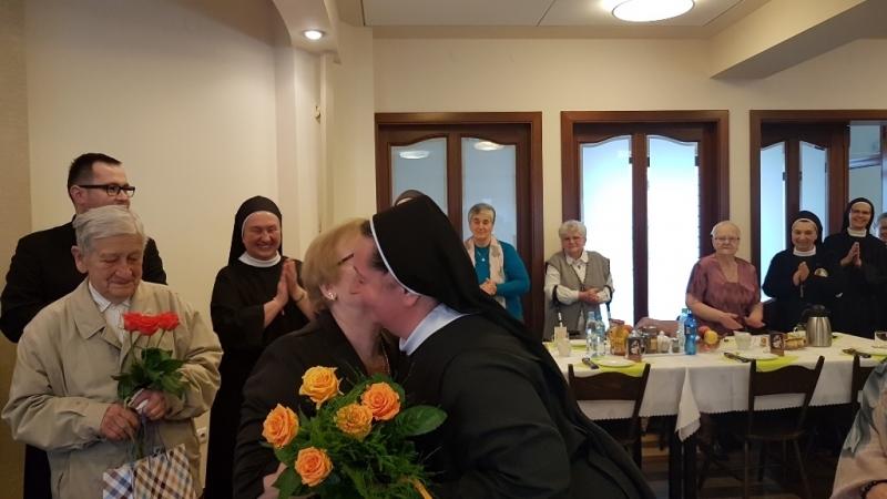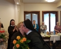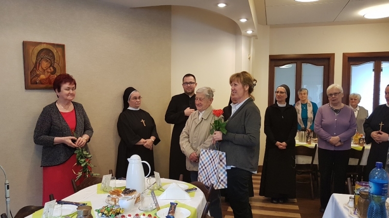 podziękowała Księdzu Proboszczowi oraz Siostrom - na ręce Przełożonej Generalnej M. Jany Przetak - za wieloletnią jakże owocną działalność zarówno w ramach „Modlitewnej Grupy Świętego Józefa”, jak i harmonijną współpracę Członków MGSJ w Kuchni dla potrzebujących działającej przy Parafii Miłosierdzia Bożego na Osiedlu Oficerskim w Krakowie. Dalsze wspólne świętowanie miało miejsce w zakonnym refektarzu Sióstr, gdzie przy świątecznym stole odbyło się radosne, rodzinne spotkanie. W jego trakcie nie zabrakło oczywiście dalszych przemówień, serdecznych życzeń, kwiatów zarówno dla Sióstr, dla których przecież Święty Józef jest głównym Patronem Zgromadzenia, jak też dla Solenizantów z Modlitewnej Grupy.