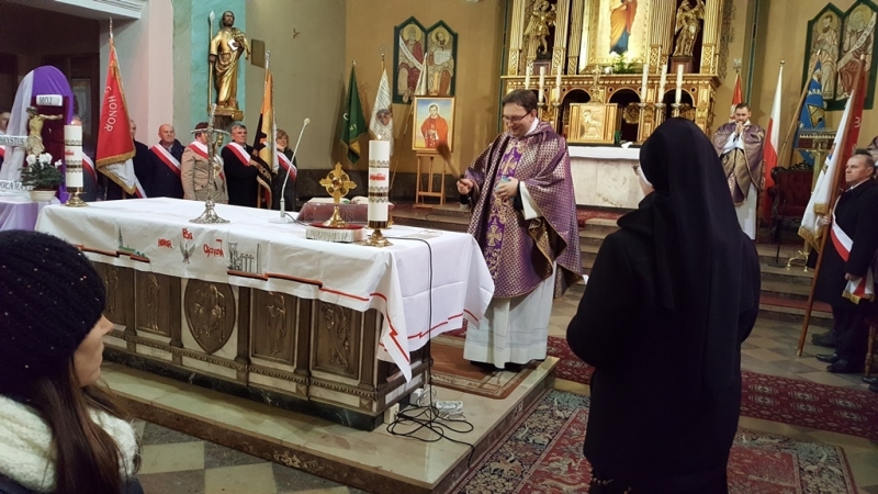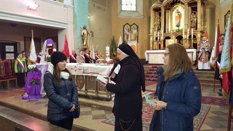 W tę inicjatywę włączyły się również Siostry św. Józefa z Częstochowy i dnia 12.03.2017 r. wspólnie z Członkami „Modlitewnej Grupy Świętego Józefa”, którzy przybyli także ze swymi rodzinami, kilka sióstr razem z S. Przełożoną Ezechielą wzięło udział we Mszy św. o godz. 12.00 w Sanktuarium św. Józefa w Częstochowie. Była to jednocześnie Msza św. za Ojczyznę, w której brała udział m.in. młodzież ze szkół Stowarzyszenia Przyjaciół Szkół Katolickich z Częstochowy wraz ze sztandarami szkół. Nasz udział w tej Mszy św. był wcześniej zapowiedziany w ogłoszeniach parafialnych. Byliśmy oczekiwani, bardzo gościnnie i serdecznie przyjęci. S. Zofia, referentka powołaniowa w naszej wspólnocie, przeczytała jedno czytanie mszalne, a drugie czytanie przeczytała członkini Modlitewnej Grupy - p. Maria, nauczycielka z naszej szkoły. Siostry podjęły także razem z młodzieżą śpiew na dziękczynienie i zakończenie Mszy św.. przy akompaniamencie gitary, na której grała S. Przełożona Ezechiela. Pod koniec Mszy św. przed błogosławieństwem S. Salome powiedziała słowo o Zgromadzeniu i „Modlitewnych Grupach św. Józefa” oraz zaprosiła młodzież na rekolekcje i dni skupienia w naszym domu. Następnie miało miejsce uroczyste przyjęcie do Modlitewnej Grupy i powitanie p. Bożeny - pracownika naszego Ośrodka. Podczas ceremonii przyjęcia zaangażowana też była zelatorka Grupy – p. Maria. Po zakończonej Mszy św. wszyscy członkowie Modlitewnej Grupy podeszli, by razem z nową Członkinią, Siostrami i młodzieżą śpiewającą w chórku zrobić sobie pamiątkowe zdjęcie. Następnie miało miejsce jeszcze krótkie spotkanie z młodzieżą, które zakończyło się zaproszeniem młodzieży na spotkanie w naszym domu w najbliższy piątek.