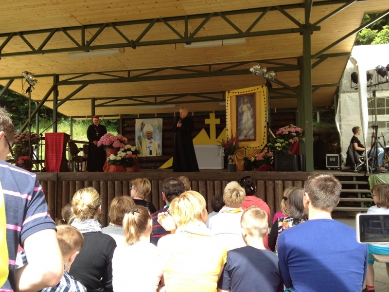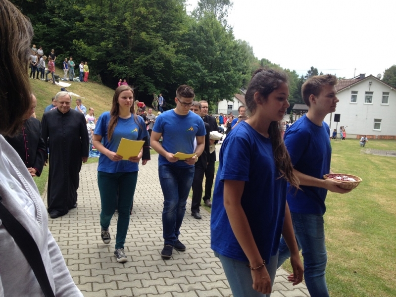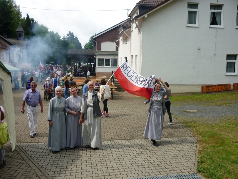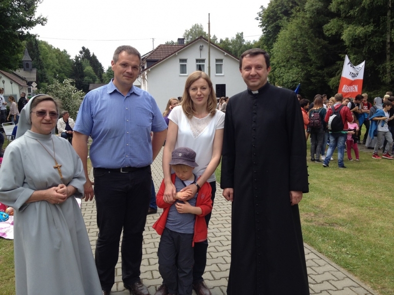 Uroczystej Mszy Św. przewodniczył Ks. Wiesław Śmigiel - Biskup pomocniczy z diecezji pelplińskiej. W koncelebrze uczestniczyło 40 kapłanów, między innymi Ks. Prał. Stanisław Budyń - Rektor Polskiej Misji Katolickiej, Ks. Damian Lewiński - Dyrektor Domu „Concordia”, Ks. Bogdan Renusz, organizator Stowarzyszenia Formacyjnego Młodych – „Emaus”. Tegoroczne spotkanie wkomponowane w dziękczynienie za Kanonizację Jana Pawła II, nawiązywało do jego pontyfikatu, tak bardzo głoszącego Boże Miłosierdzie. Zgromadziło ono ponad 1300 osób młodych sercem (w różnym wieku), pragnących przeżyć wspólnotę wiary i modlitwy, swoisty festiwal nadziei, radości i młodości. W programie miały miejsce: przedstawienie grup z poszczególnych miast, Msza Św., Adoracja Najświętszego Sakramentu, Koronka do Bożego Miłosierdzia, koncerty grup: ”Siewcy Lednicy”, „Emaus”, „Orły”, natomiast dla wzmocnienie ciała można było skorzystać z kuchni „polskiego smaku”. W to szczególne święto wiary, miłości i miłosierdzia, już po raz trzeci jako Marty i Marie, włączyły się Siostry Świętego Józefa z Przełożoną Generalną Zgromadzenia - M. Leticją Niemczura przeprowadzającą w tym czasie wizytacje we wspólnotach Sióstr na terenie Niemiec. Nowością była niecodzienna obecność Sióstr pracujących w duszpasterstwie powołań - S.M. Marciny Kapustka i S.M. Rafaeli Fryc. Cieszy fakt, że mamy taką piękną młodzież polską...