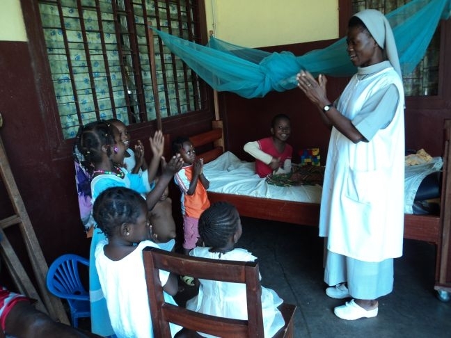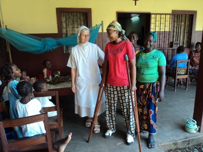 Ulewne tropikalne deszcze dopełniają dzieła zniszczenia każdego roku. Brak jest też stałego prądu, który dostarczany jest tylko kilka godzin na dobę. W naszej dzielnicy np. mamy prąd jedynie w godzinach od 14.00 do 16.00, oraz w nocy od godz. 22.00 do 5.00 nad ranem. Bywa też i tak, że kilka dni mija i prądu wcale nie ma. Dlatego każdy kto może, zaopatruje się w prądnicę, by chociaż ’podmrozić’ lodówkę i nie przebywać wieczorami w całkowitych ciemnościach. Często również nie ma wody szczególnie w dzielnicach położonych na wzgórzach. Nadto, artykuły żywnościowe są tu bardzo drogie, gdyż kraj nie ma dostępu do morza, a więc utrudniony jest transport. Towary sprowadzane są z sąsiedniego kraju – z Kamerunu. W stosunku do krajów, w których wcześniej pracowałam tj. Kongo, Kamerun, Gabon, ten jest naprawdę bardzo biedny, mówimy: “prawdziwa Afryka”. Inną trudnością dla przyjeżdżających tu misjonarzy jest język lokalny “sango”, którym wszyscy się tu posługują mimo, że język francuski jest urzędowym językiem w tym kraju. Niestety, tylko niewielki procent ludności włada nim dobrze. Nawet uczniowie w klasach maturalnych mają kłopoty z mówieniem po francusku. Siostry Józefitki w składzie: S. Damiana Rojek, S. Merveille Mbala i S. Ambroisine Atite rozpoczęły nową misję w Bangui 22 września 2011 roku. Przybyły tu (na zaproszenie Administratora Apostolskiego a obecnie już Arcybiskupa Bangui Ks. Dieudonné Nzapalainga) do prowadzenia Ośrodka reedukacyjnego dla dzieci niepełnosprawnych, oraz do pracy w parafii św. Jakuba. Ks. Arcybiskup zaprosił nas do prowadzenia diecezjalnego Ośrodka dla Niepełnosprawnych, który nadawał się wówczas już tylko do zamknięcia. Kiedy pod koniec września ubiegłego roku znalazłyśmy się w Bangui, była już pora deszczowa, miasto więc było “zapłakane” i Ośrodek przedstawił nam się w opłakanym stanie. Personel był zdezorientowany, ponieważ brak było regulaminu pracy, wiele rzeczy zostało rozkradzionych. Sam budynek był odrapany, szary, ławy do ćwiczeń z podartymi obiciami, brak było nawet zlewu do umycia rak, itd. Cóż było robić, usiadłyśmy w domu (który też trzeba było urządzić - mieszkamy przy dużej parafii św. Jakuba) i po pierwszych wrażeniach, powitaniach - a ludzie tu są bardzo życzliwi i gościnni - trzeba było zabrać się do pracy. Najpierw powierzyłyśmy nową misję Panu Bogu, by dał nam siły i środki do jej realizacji. Pan Bóg oczywiście posługuje się ludźmi, więc pomoc szybka i konkretna przyszła z diecezji tarnowskiej, a konkretnie z “Tarnowskiego Dzieła Misyjnego”, który prosiłam o pomoc. Dzięki temu można było pomóc kilku osobom w zakupie protez, wózków inwalidzkich, oraz pomóc w operacjach usprawniających przeprowadzanych w naszym Ośrodku kilka razy do roku przez francuską ekipę lekarzy, którzy przyjeżdżają tu dobrowolnie w ramach niesienia pomocy biednym krajom. Z otrzymanych dotacji można było również opłacić dojazdy i dożywianie dzieciom niepełnosprawnym, które mieszkają daleko i nie stać je ani na dojazdy ani na leczenie. Również sam Ośrodek dzięki tej pomocy zmienił się nie do poznania... Od czasu naszego przybycia do Bangui zmieniło się również wiele w organizacji pracy w Ośrodku. Jest jeszcze jednak wiele do zrobienia. Powoli przy pomocy Boskiej i ludzkiej staramy się robić to, co leży w naszej mocy… Mamy też świadomość, że jesteśmy tu jakby na froncie, ale całe nasze Zgromadzenie wspiera nas w modlitwie jak również materialnie, byśmy mogły pracować tu na chwałę Bożą i pożytek zwłaszcza cierpiącym ludziom.”