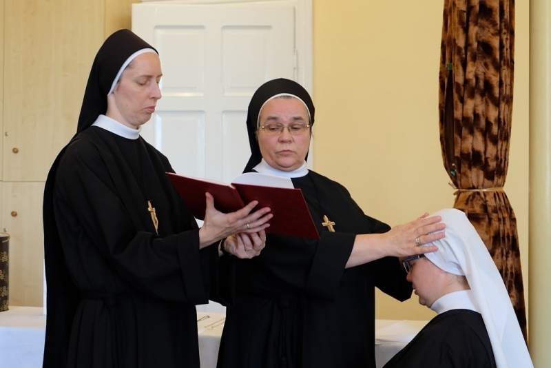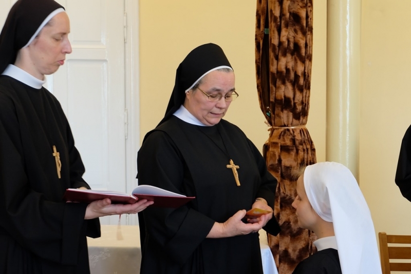 Inicjację rozpoczęła Liturgia Słowa, podczas której Siostry rozważały wybrane perykopy z Ewangelii oraz z Listu do Efezjan. W stronę Sióstr Nowicjuszek popłynęły słowa dobrych życzeń wypływające z obfitego Bożego Słowa. Siostry otrzymały nowe imiona: Iza - S. Chiara, Edyta - S. Terezita, Dominika - S. Marianna, oraz białe weloniki i medaliki św. Franciszka. Natomiast Siostry Nowicjuszki rozpoczynające drugi rok Nowicjatu: S. Estera i S. Laura otrzymały medaliki św. Józefa, który jest szczególnym Patronem tego etapu formacji. Po wprowadzeniu Sióstr Nowicjuszek do klauzury nowicjackiej, radosne wydarzenie dopełnił wspólnotowy obiad oraz rekreacyjne spotkanie z Matką.